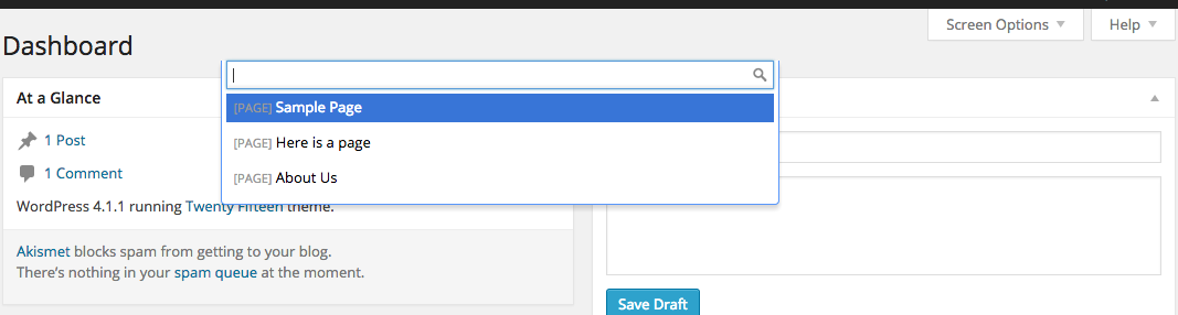 Dashy gives you a search field to get to admin pages quicker. More keyboard shortcuts right inside of WordPress. Get to pages, post, plugins, custom post types, faster. You can even search and get a to single post with the keyboard. To activate, use Control+Space.