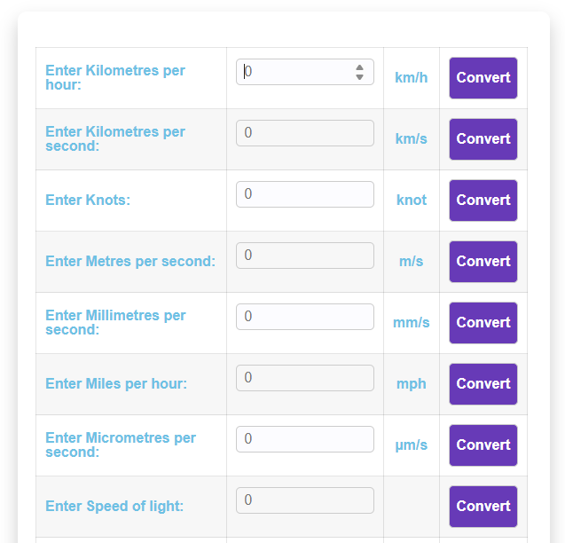 [codeart_units_converter_converters type='weight' style='table'][codeart_units_converter_converters type='speed' style='table'][codeart_units_converter_converters type='area' style='table'][codeart_units_converter_converters type='volume' style='table'][codeart_units_converter_converters type='length' style='table']- and more…