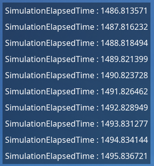 Print("SimulationElapsedTime : {SimulationElapsedTime}", ?Duration := 10.0)