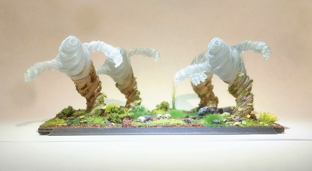 I ran a horde of (unpainted) air elementals a couples times in KoW 3e. They were… OK. They need Brew of Strength to be a threat. They are good flank/rear harassers but you really want a Surge source nearby for shenanigans. Once you pay for BoS and a character with Surge, and then go through the trouble to keep them close, you start to really it’s a pretty hefty investment for debatable ROI.