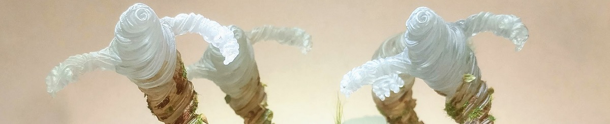 So I was thinking of ways to give them more color and texture and variation and came up with “swirling dust and leaves and debris”. I used tile grout, thinned washes, flock, and various dried herbs. If I were to do it again I would go lighter on the grout, smooth out the transitions, and carry the dust and leaves higher up on the body. But all in all I’m pretty happy.