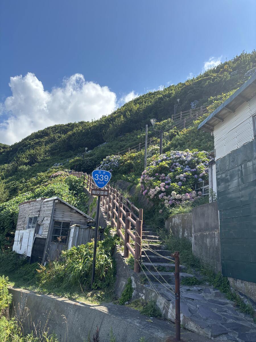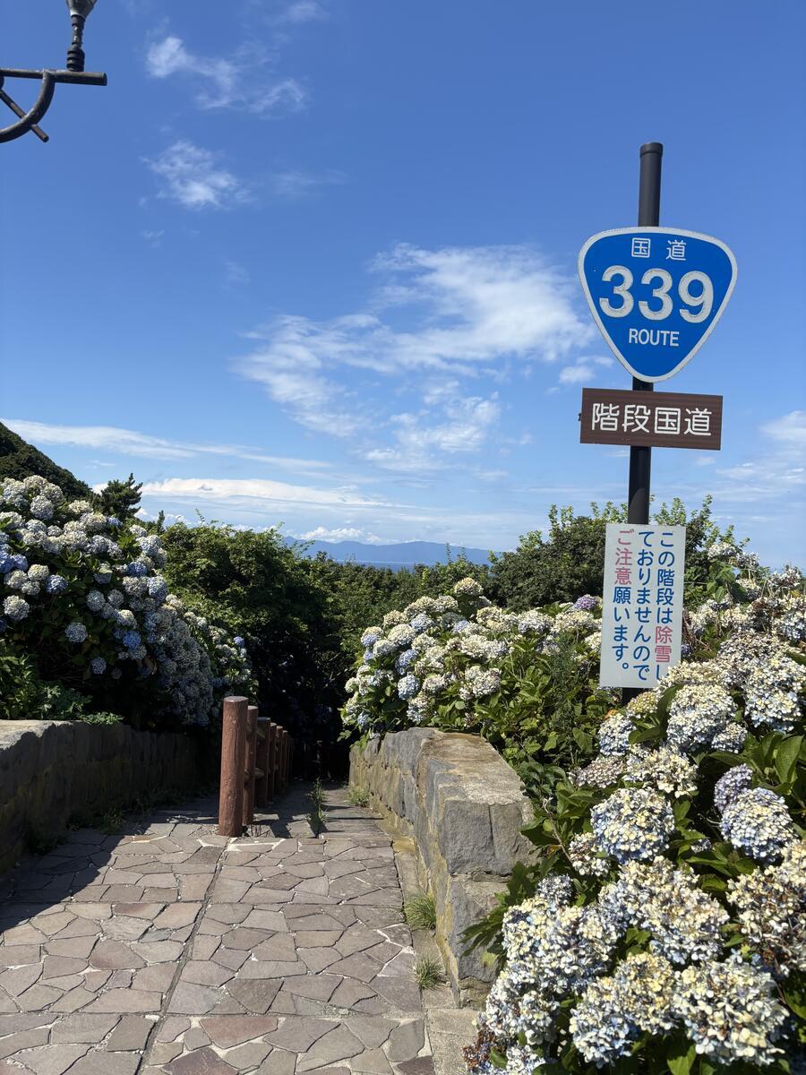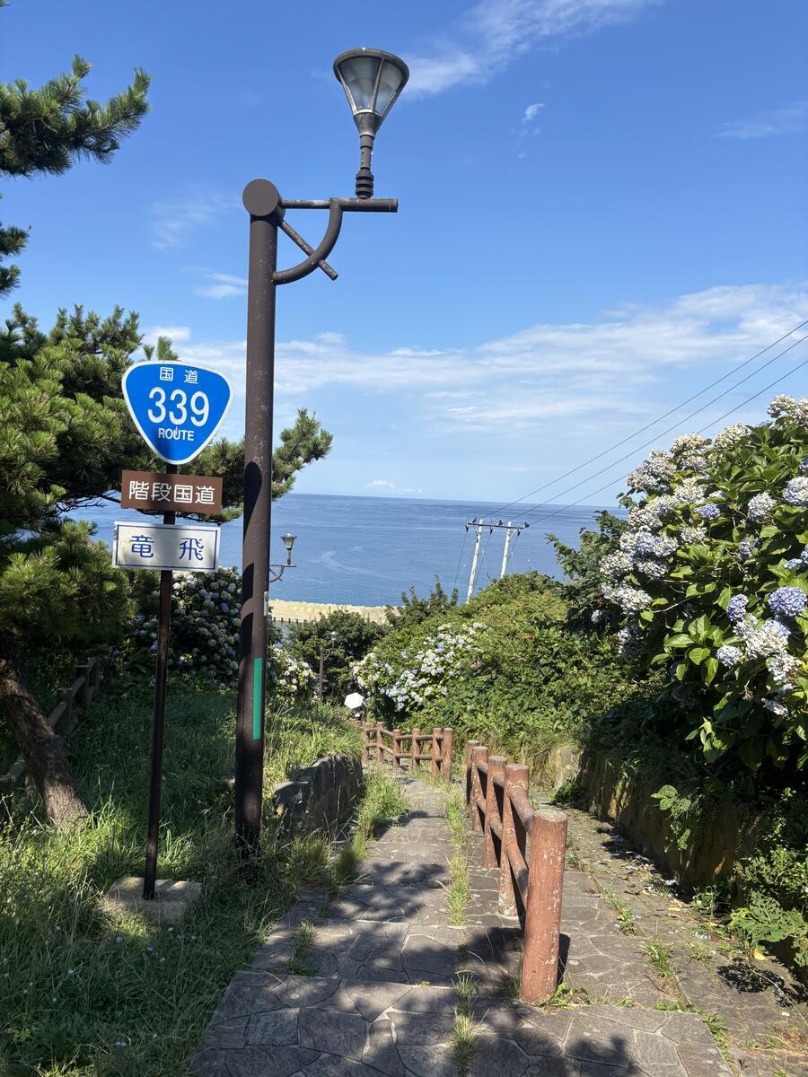はい、龍飛崎のもうひとつの名所がこちら、階段国道339号線。全国で唯一?歩道が