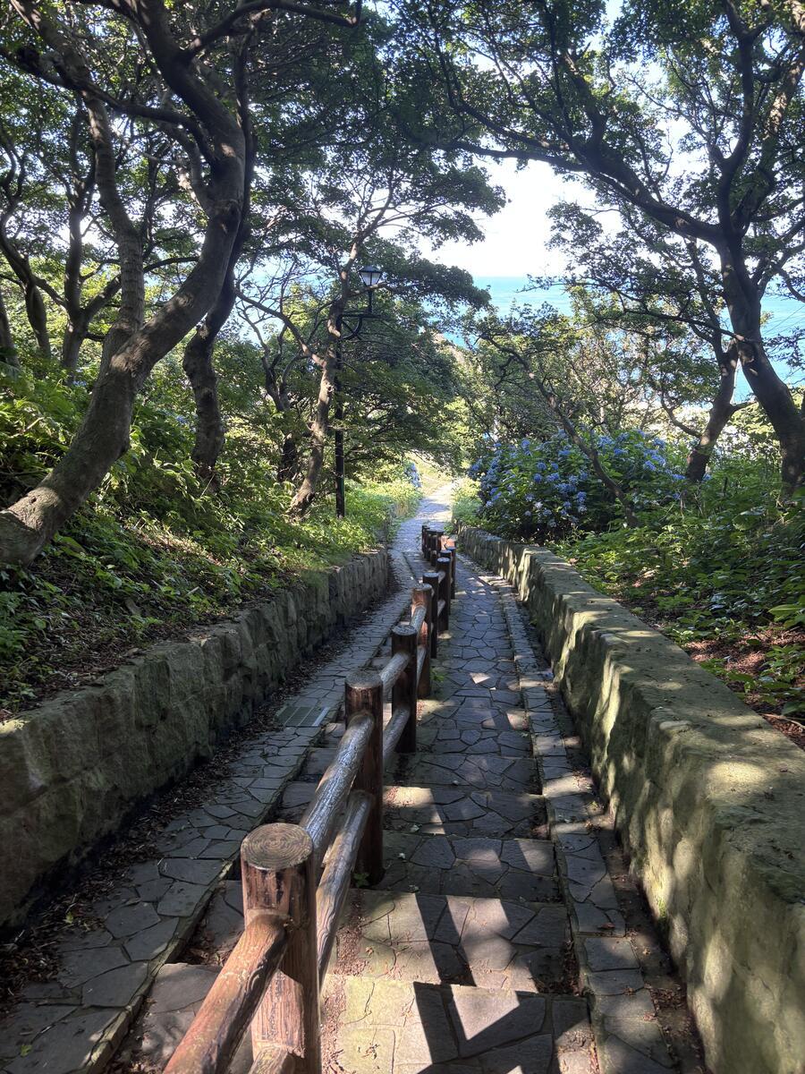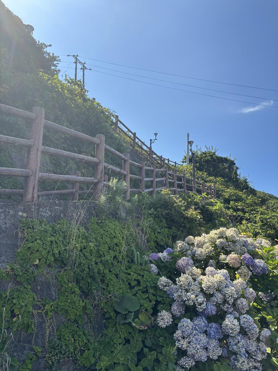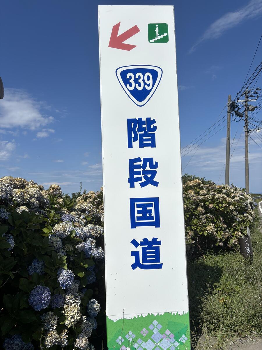 はい、龍飛崎のもうひとつの名所がこちら、階段国道339号線。全国で唯一?歩道が