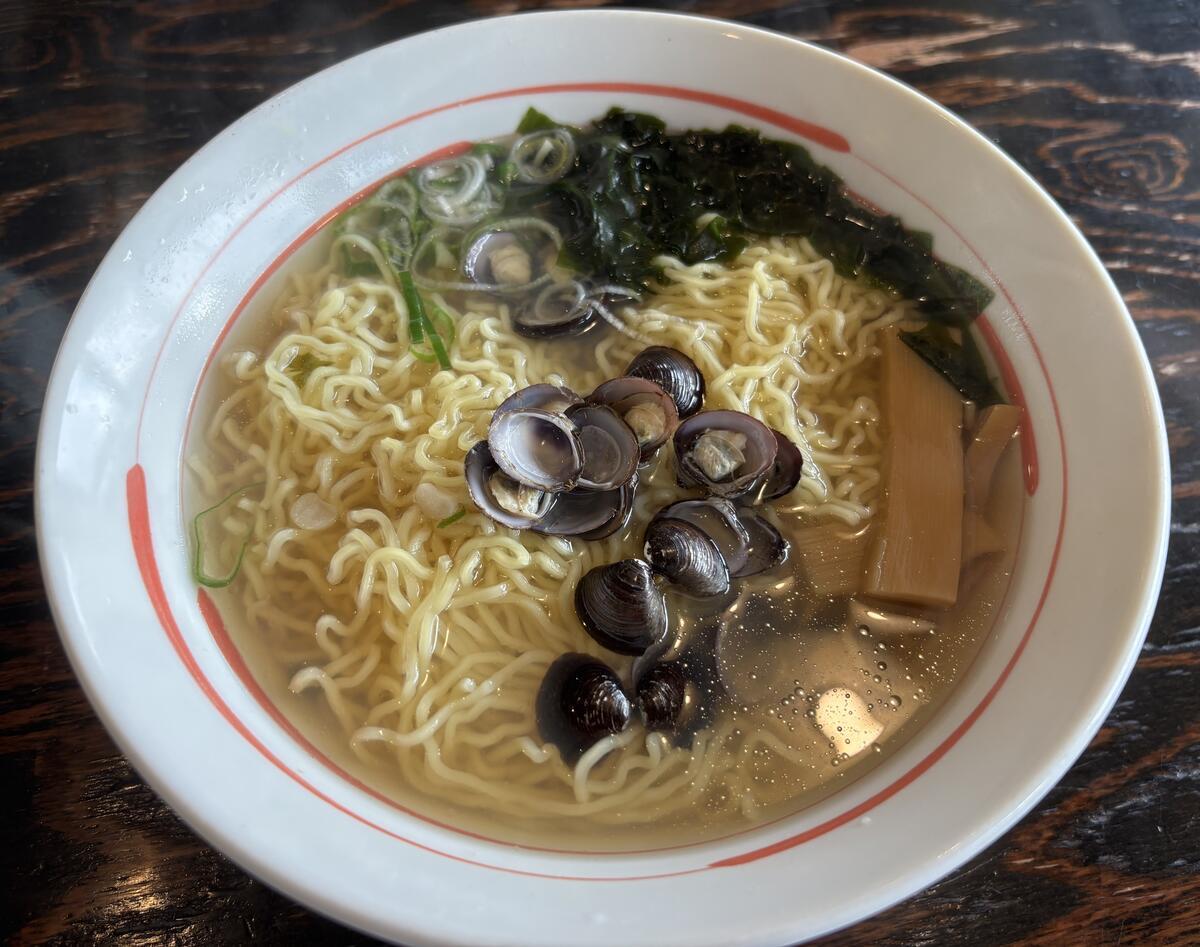 はい、しじみラーメンです!(ここでも麺大盛り~♪)あっさりしたスープ。しじみも