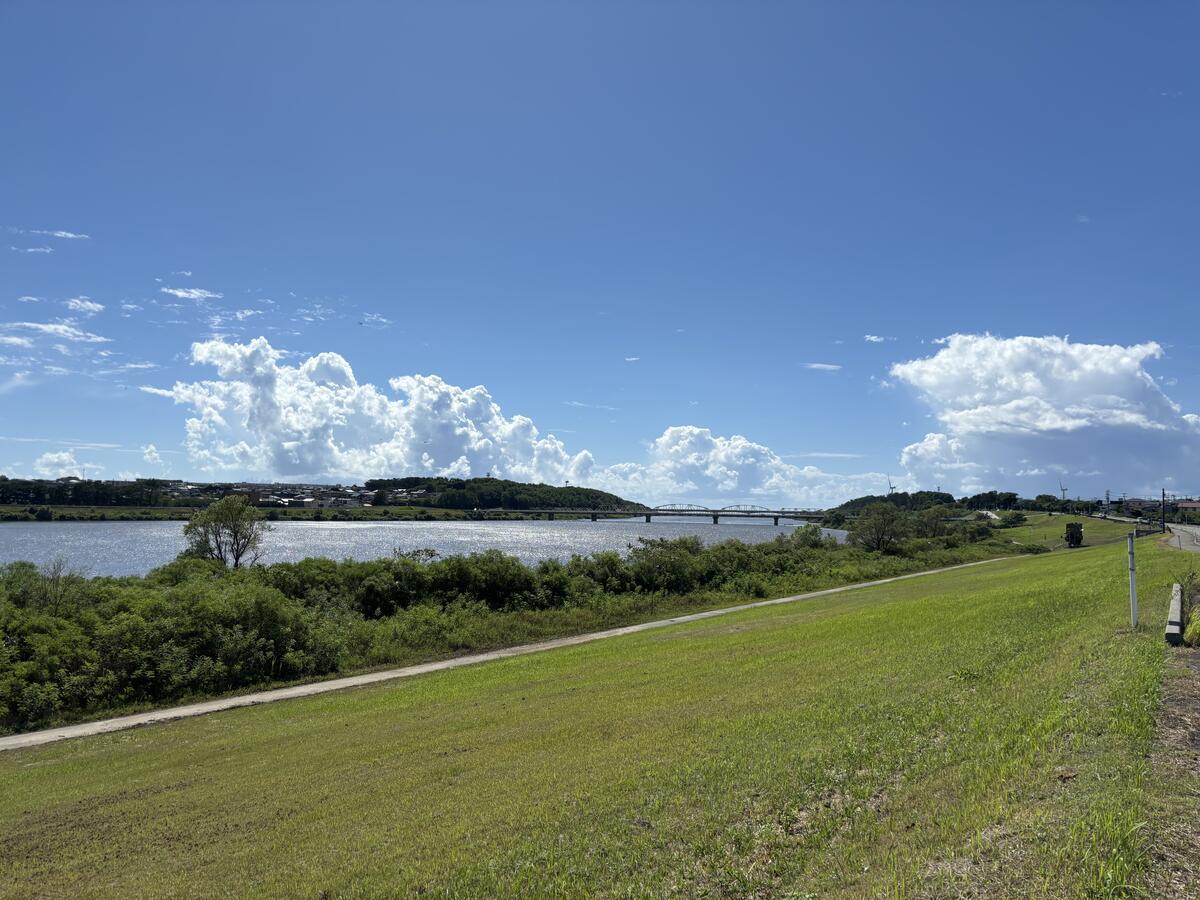 一級河川雄物川…河川敷も広いですね~風がさぁーと渡っていて気持ち良かったです…。
