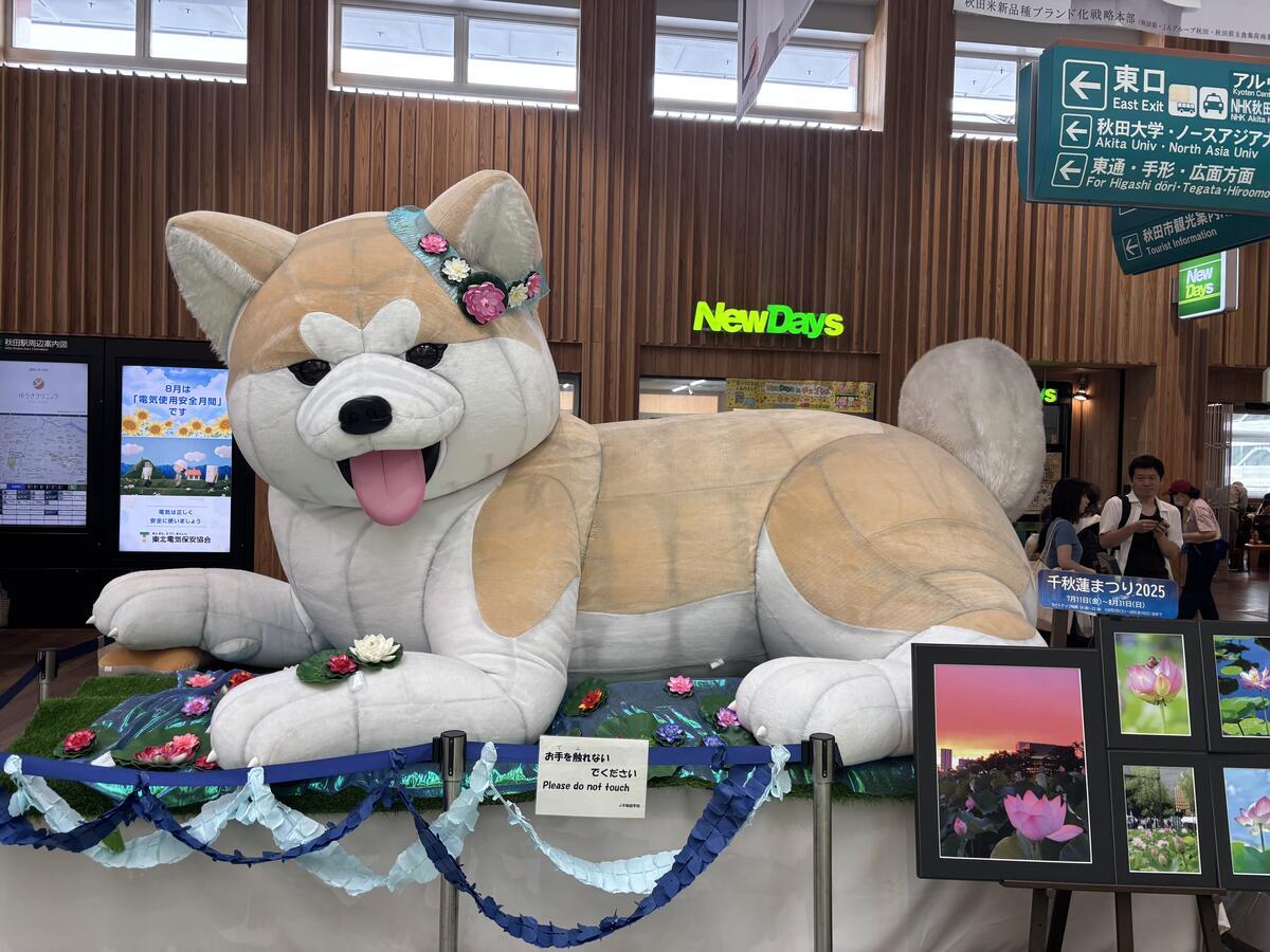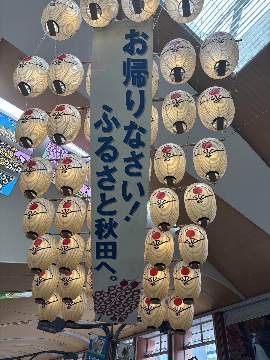 秋田駅に着きました。駅のコンコースで竿燈さんがお出迎え~♪