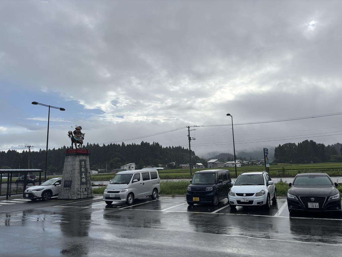 秋田県美郷町の道の駅でも小休止。雨がパラパラと降っていました。