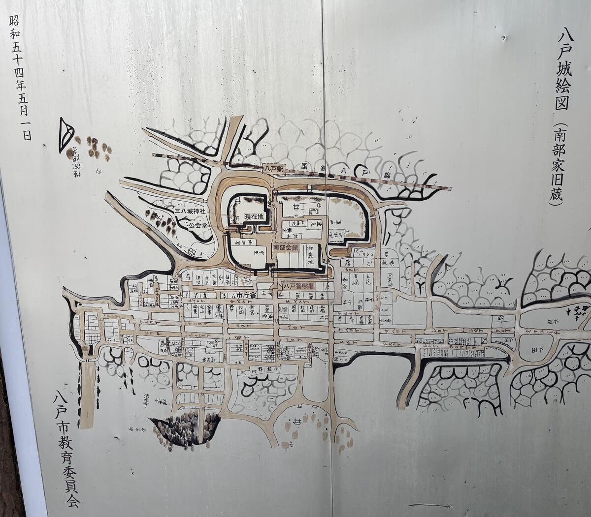 八戸城を紹介する案内看板が…南部氏のお城でした。