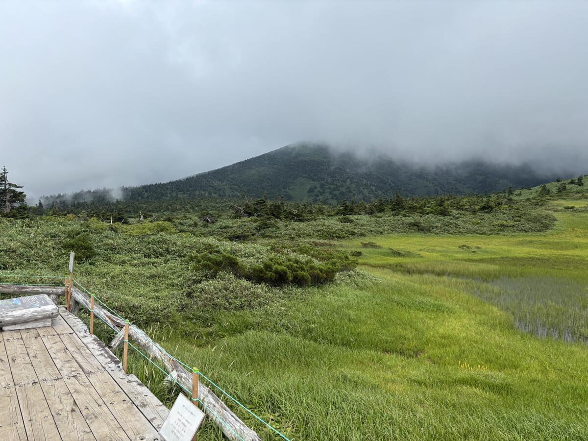 良い感じでした。三山ビューポイントから下るときに、ちらっと田茂萢湿原が眼下に