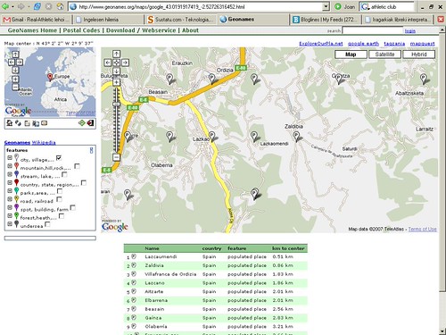 The geographic data of the region has just been greatly enhanced in Geonames. Nearly 250 locations have been corrected (moved to exact positions, and official and alternate names have been added, mostly in Basque), and other 750 new records were added, populated places most of them. The data set is from the Provincial Council of Gipuzkoa, the local administration, and has been kindly provided by the officials in charge of the local public Spatial Data Infrastructure (SDI), the B5M office, as it is called there.