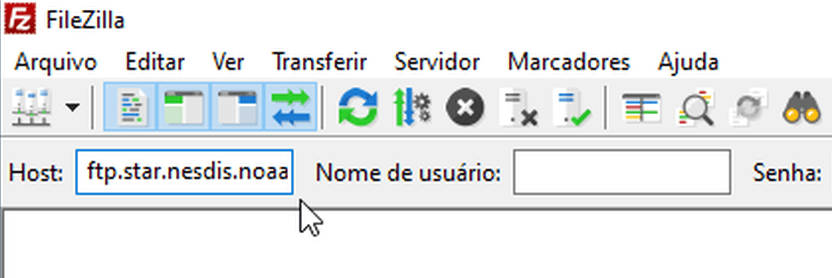 Execute o FileZilla. No campo “Host”, insira ftp.star.nesdis.noaa.gov e aperte Enter.