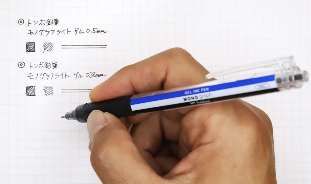 「油性よりゲルのほうが筆圧が少なく書けるから」など樹脂グリップ採用の理由はあろう。しかし冬でも手汗をかいてグリップが滑りがちな筆者は、従来モノグラフライトシリーズのゴムグリップが非常に気に入っていたため、この変更はかなり残念だ。