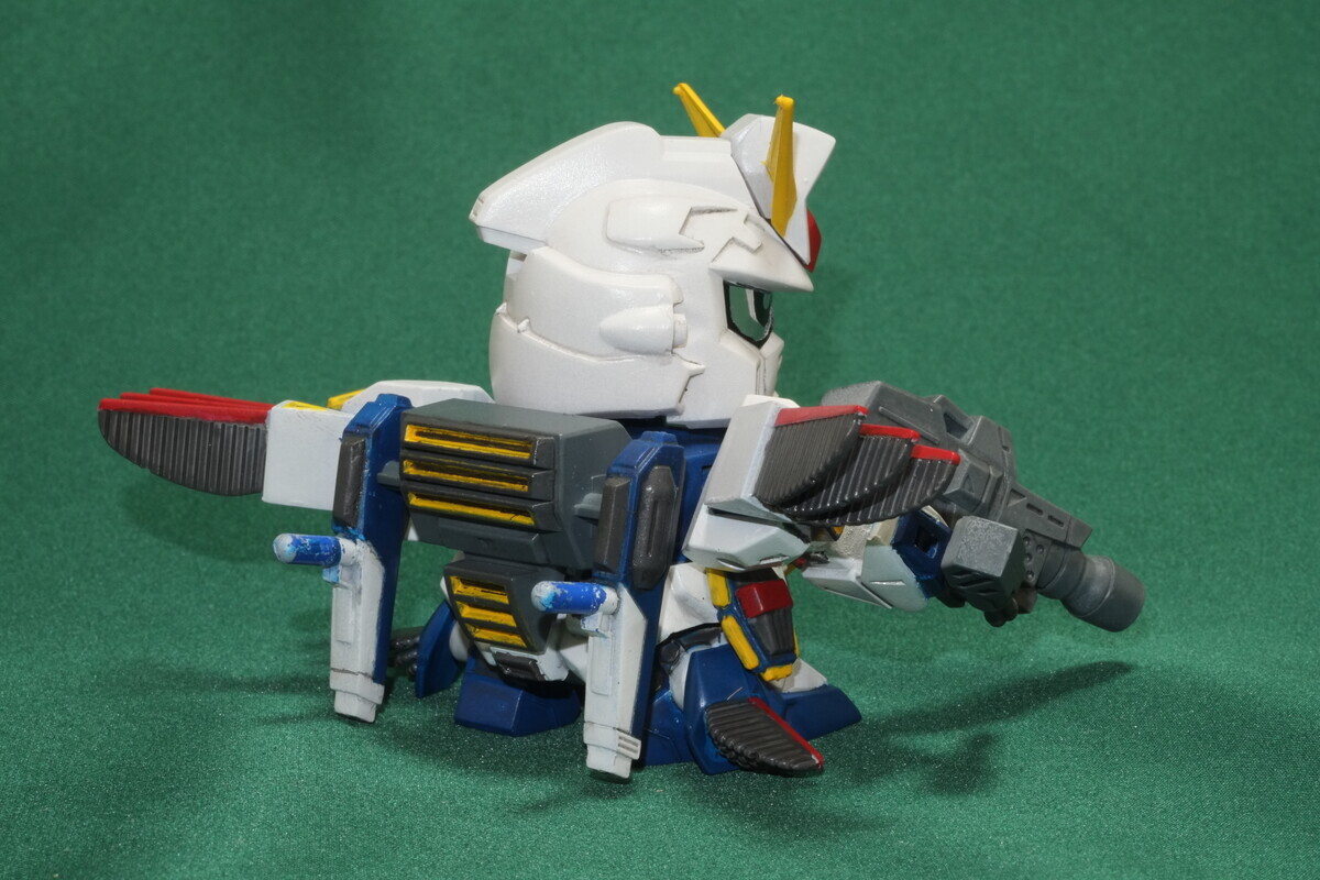 部分塗装箇所はオデコの緑∀マーク、太ももやミサイル頭の赤ワンポイント、ロラン君と牛など。また信じてもらえないかと思いますがちゃんと墨入れしました。本当です信じてください。いや俺も写真撮って「あれ全く見えねぇ!?」ってビックリしたよ!! でも本当に墨入れしてるんです信じてください!(まぁタミヤのスミ入れエナメルのグレイはめちゃくちゃ薄いから、それを選んだ時点で失敗といえば失敗ではあった・・・)