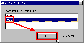 3. 設定名を「config.trim_on_minimize」として「OK」をクリック