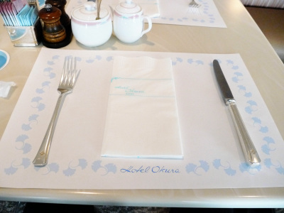 注文後、フォークとナイフ、ナプキン、テーブルマット用の敷紙が出てきました。