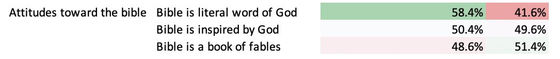 聖書に対する態度については、「聖書は神のお言葉そのものである」という人は「クリス・ロックのほうが悪い」寄りで、「聖書はおとぎ話である」という人は「ウィル・スミスのほうが悪い」寄り。