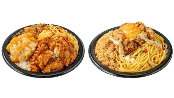 商品は、油淋鶏・餃子・麻婆春雨・中華風ペペロンチーノを一度に楽しめるチョモランマ盛りの中華弁当「ドカ盛り!欲張り中華弁当」(税別698円・1033kcal)、豚骨めしに唐揚げとペペロンチーノを組み合わせて濃厚なチーズと背油にんにくマヨをかけた「ドカ盛り!にんにくマヨ&チーズの豚骨めし&ペペロンチーノ」(税別698円・1124kcal)、ハムカツ・ハムサラダ・ソフトサラミの3種類を味わえる「ハム&ソフトサラミサンド」(税別418円・494kcal)、特大コロッケを大胆にサンドした「とびでたコロッケパン」(税込318円・661kcal)、オニオン・コーン・ベーコン・チーズの4つの具材を使った「あふれたピザパン」(税別318円・470kcal)、とろけるミルクプリンの上にホイップクリームと練乳ソースをドカ盛りに重ねた「クリームドカ盛り!背徳ミルクプリン」(税別630円・698kcal)です。