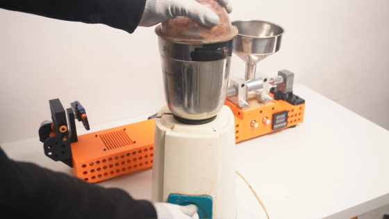 まず、失敗作やサポート材などのごみを細かく粉砕します。