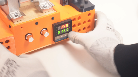 フィラメントの長さをリアルタイムで監視するためのデジタルダイヤルゲージをつけることも可能。
