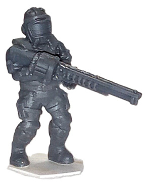 Trooper with Railgun. Another weapon cut down from an Ooh-Rah original. I had originally intended it as an auto-Cannon, but the ‘look’ wasn’t right.