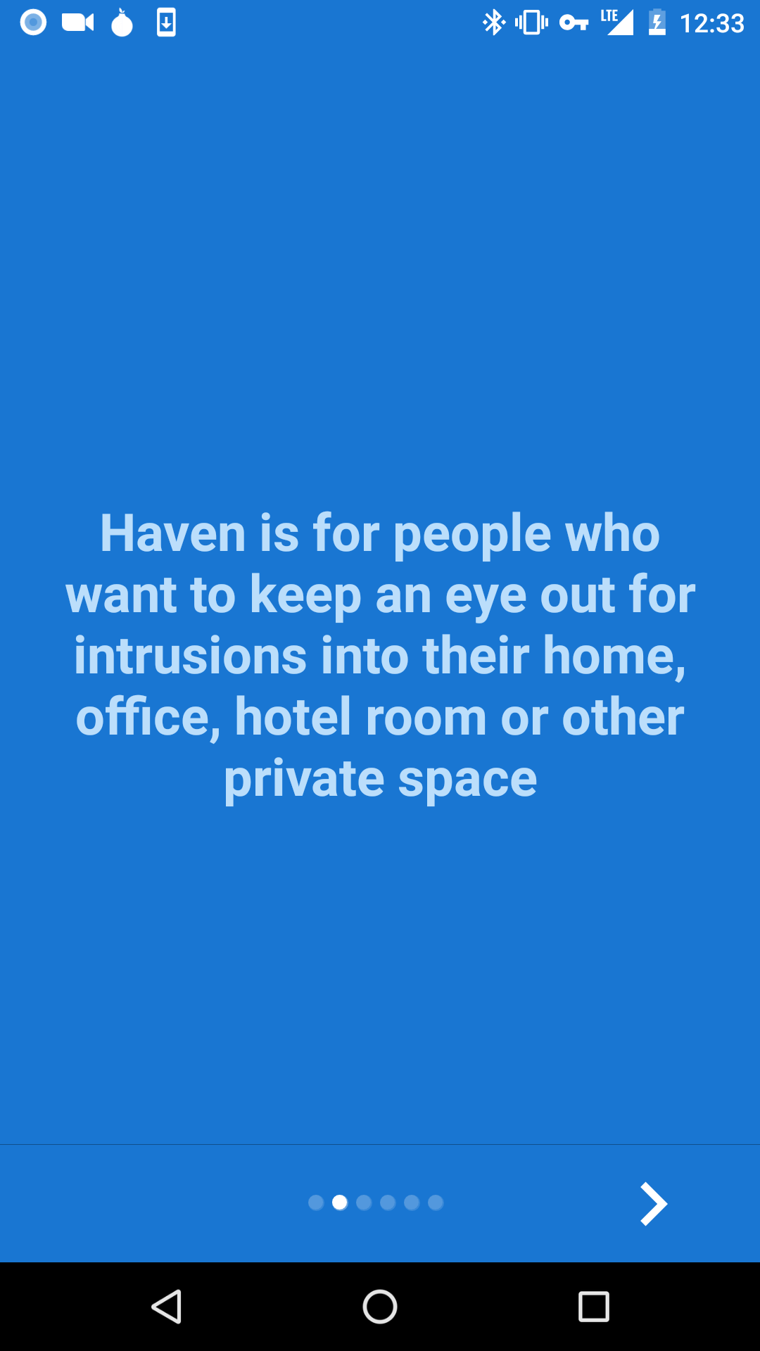 Haven is for people who need a way to protect their personal spaces and possessions without compromising their own privacy. It is an Android application that leverages on-device sensors to provide monitoring and protection of physical spaces. Haven turns any Android phone into a motion, sound, vibration and light detector, watching for unexpected guests and unwanted intruders. We designed Haven for investigative journalists, human rights defenders, and people at risk of forced disappearance to create a new kind of herd immunity. By combining the array of sensors found in any smartphone, with the world's most secure communications technologies, like Signal and Tor, Haven prevents the worst kind of people from silencing citizens without getting caught in the act.