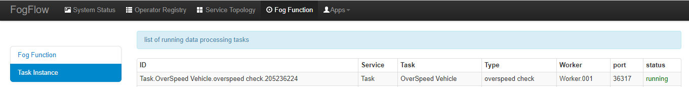 - Check the system status from the FogFlow DashBoard at