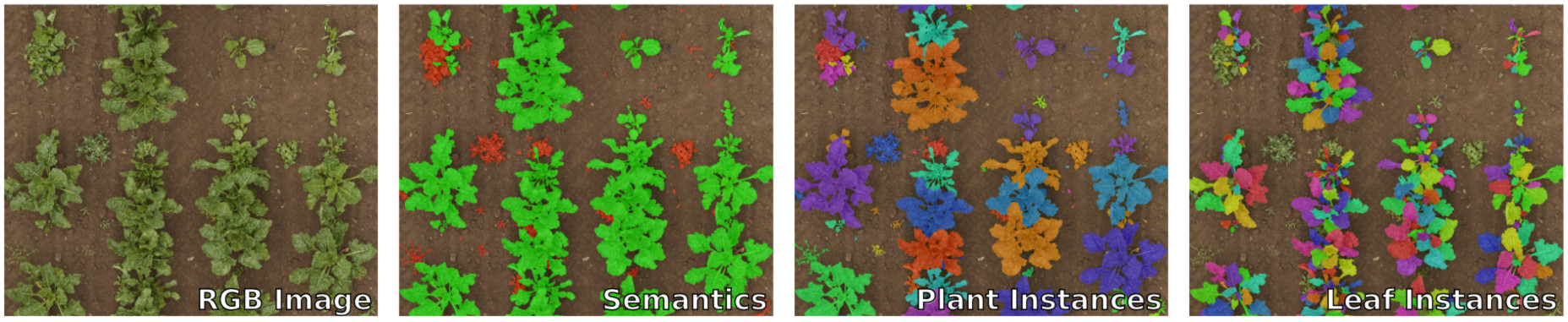 $ phenobench-validator --task <task> --phenobench_dir <dir> --zipfile <zipfile>taskis one of the following options:semantics,panoptic,leaf_instances,plant_detection,leaf_detection, orhierarchical.phenobench_diris the root directory of the PhenoBench dataset, wheretrain,valdirectories are located.zipfileis the zip file that you want to submit to the corresponding benchmark on CodaLab.