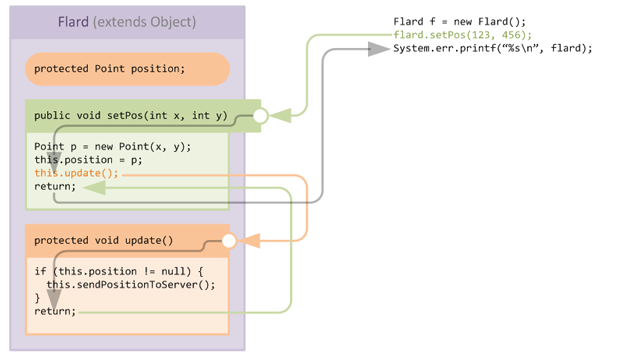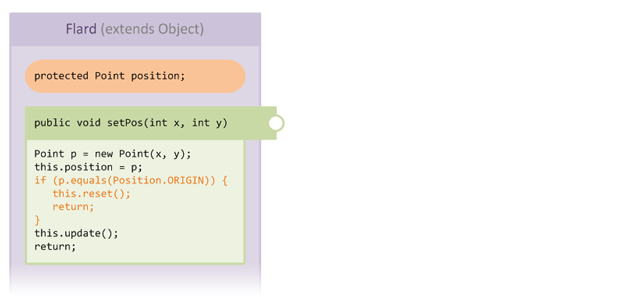 Before we go into too much detail, let's introduce our case study example. The following diagram shows a schematic view of some code in an extremely simple class Flard: