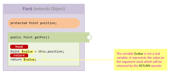 The value is temporarily stored in the method's argument stack, you can think of these as temporary, invisible variables which store values as the JVM manipulates them. What this means from a practical perspective is that HEAD and RETURN are actually separate places in the method!
