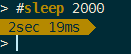 This displays the number of days, hours, minutes, seconds and milliseconds the previous command took to execute. Commands who are so fast they fall below a certain threshold are ignored.