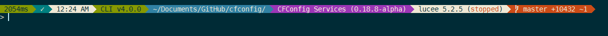 install commandbox-bullet-trainThis module uses some special Unicode characters to draw the prompt that may not be in your default terminal. You can turn off all Unicode chars and live with an uglier shell like so: