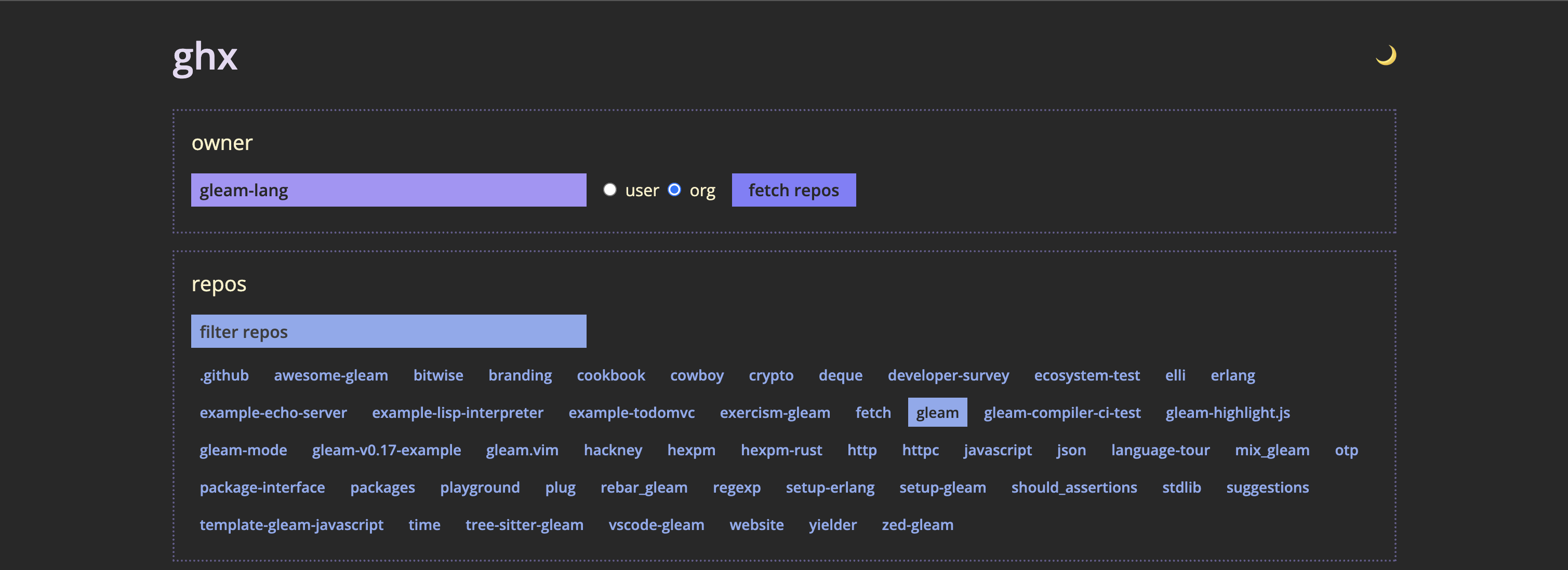 -t, --owner-type <STRING> Owner type [default: user] [possible values: user, org]