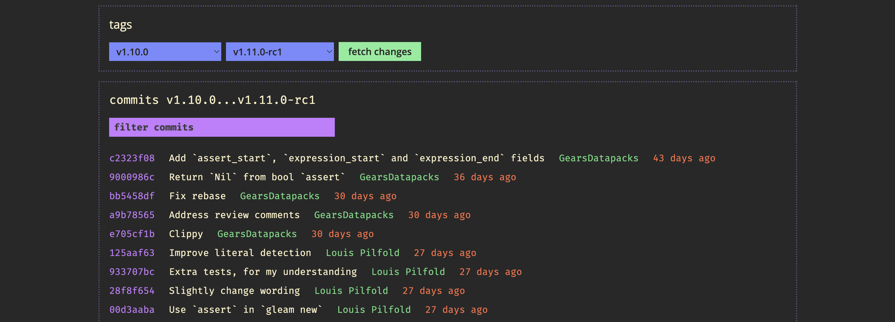 ghx provides an alternative to GitHub's UI for viewing commit logs between