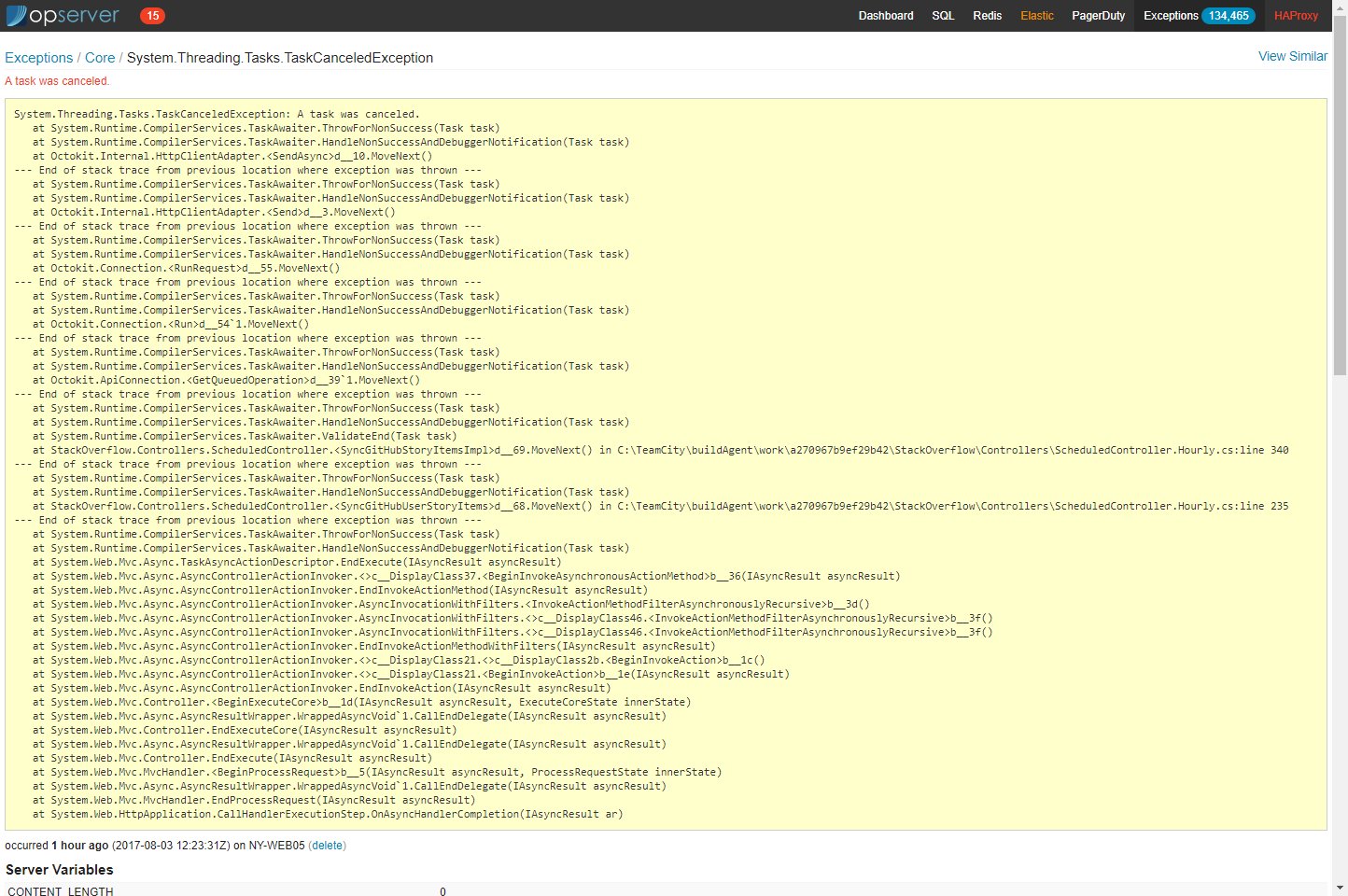 Then the stack trace matches the users code and the VS call stack window, which also has the methods resolved And it only shows the boundaries where it actually goes async; rather than just a transferring throw However, I'm not sure how to detect that in the stack trace |