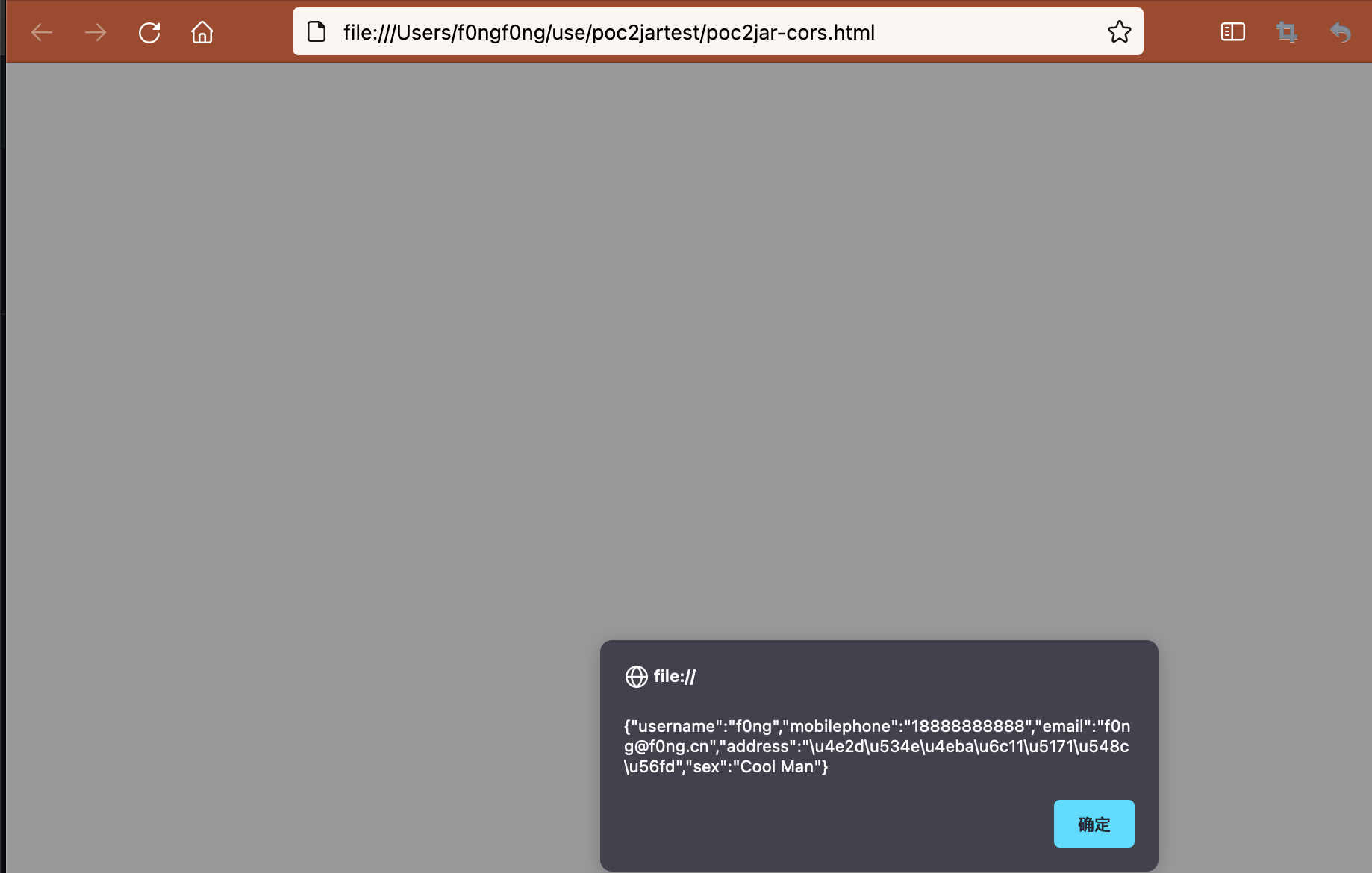 访问poc2jar-cors.html,即可看到弹窗: