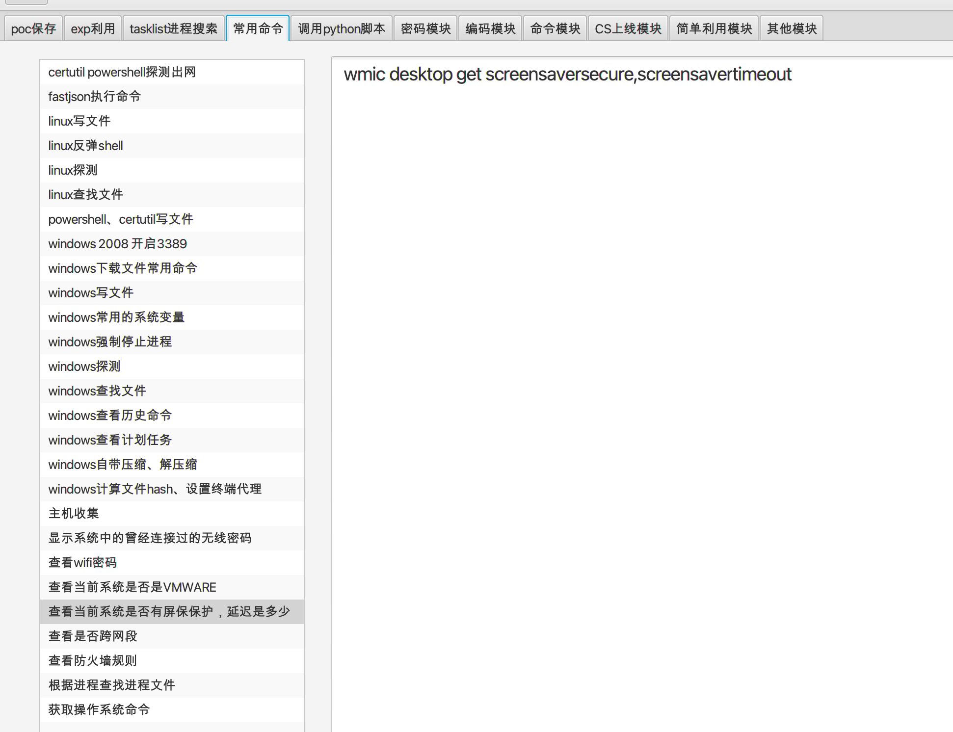 1.增加命令模块(Bash模块、PowerShell模块、Python模块、Perl模块),参考http://www.jackson-t.ca/runtime-exec-payloads.html