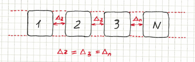 Syntax: %{objectPattern} are aligned vertically above each other with equal distance