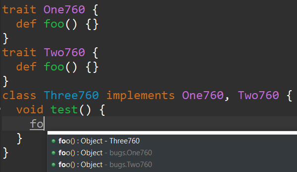 Groovy Eclipse now supports Traits with the Groovy 2.3 compiler. A trait is like an interface and can be implemented by your classes. However, Traits can also have fields and methods. Multiple Traits can be composed onto a class without using multiple inheritance and avoiding the "diamond problem".