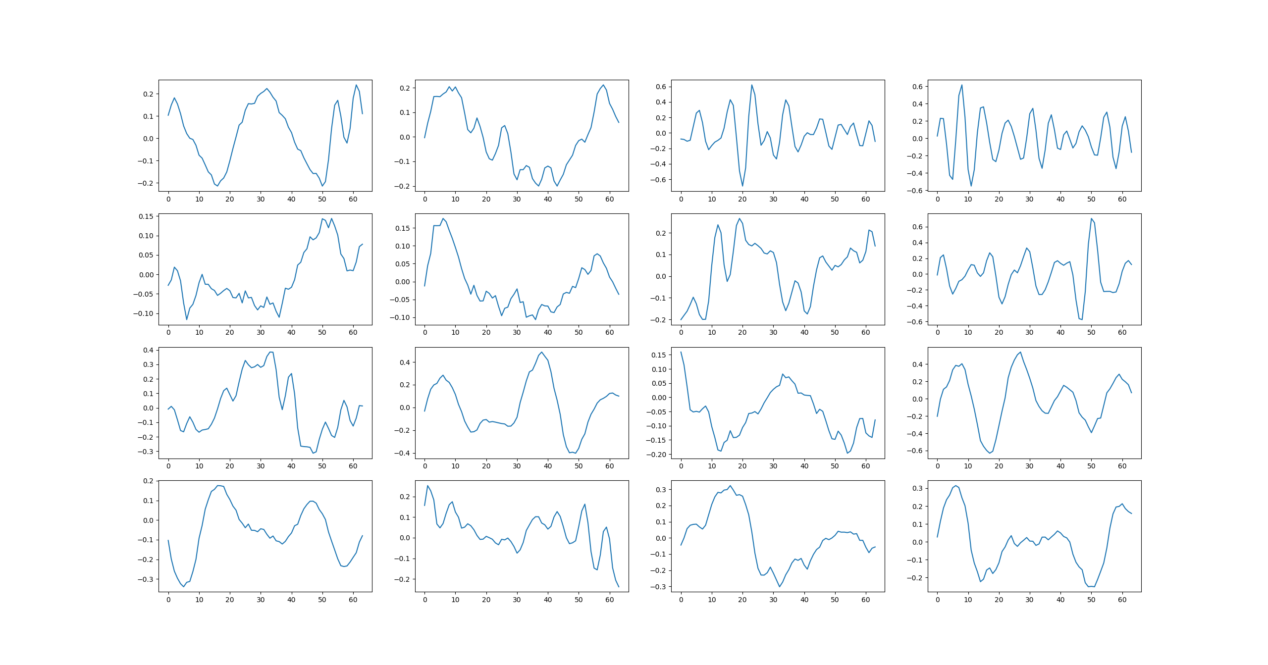 Activations for all cells in the last RNN layer for the same sample: