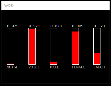 VadNet is a real-time voice activity detector for noisy enviroments. It implements an end-to-end learning approach based on Deep Neural Networks. In the extended version, gender and laughter detection are added. To see a demonstration click on the images below.