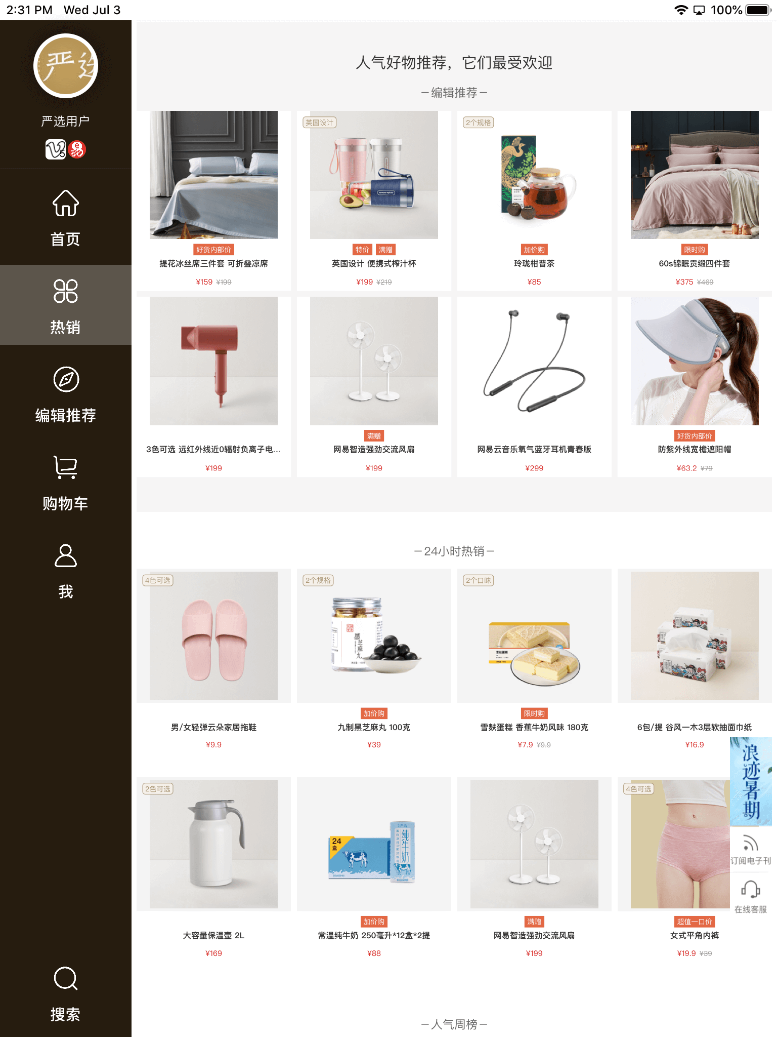 The iPad version of '网易严选' iOS app, completly written in SwiftUI, and almost has full features like 网易严选's website. It is using real data from server to render Views, though is lacked server api to keep login state persistent.