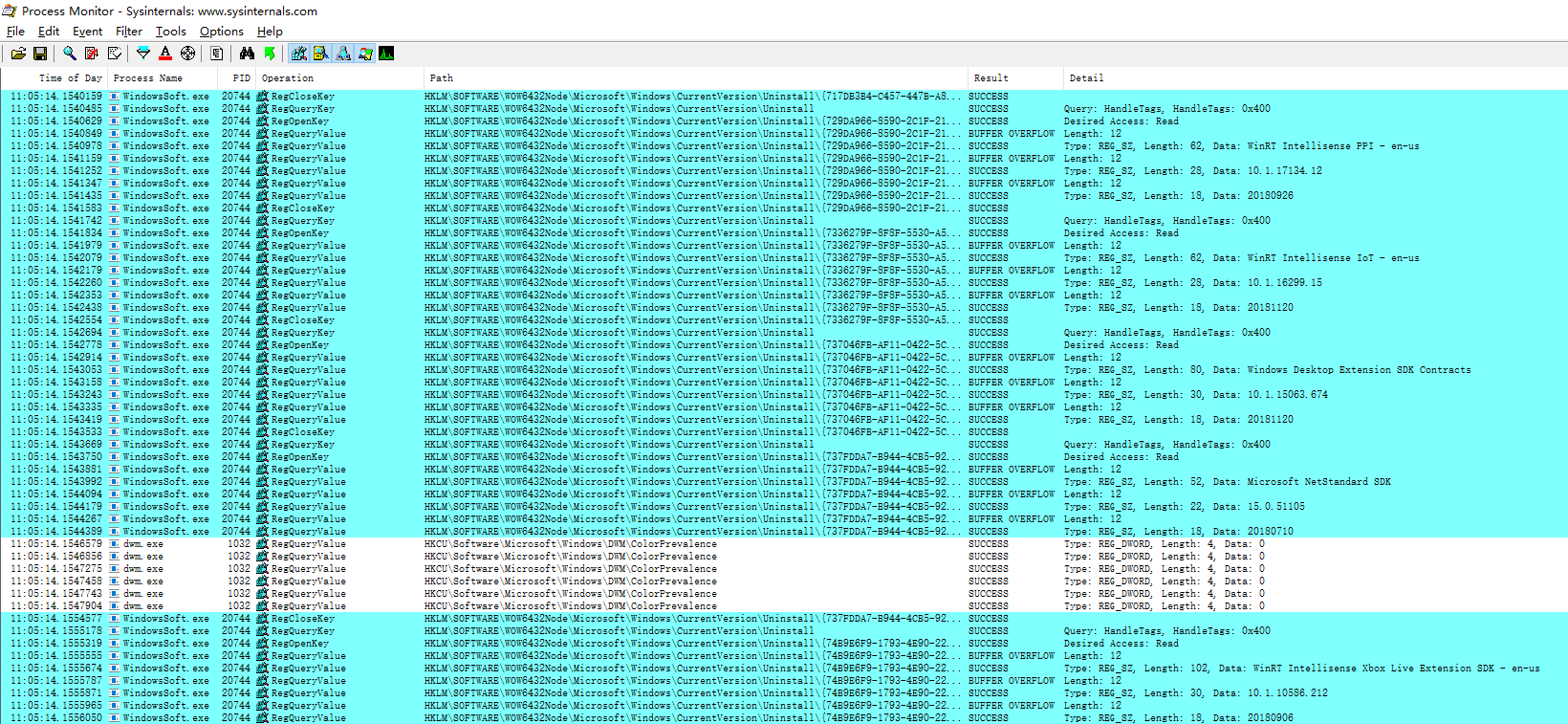 监控读取注册表