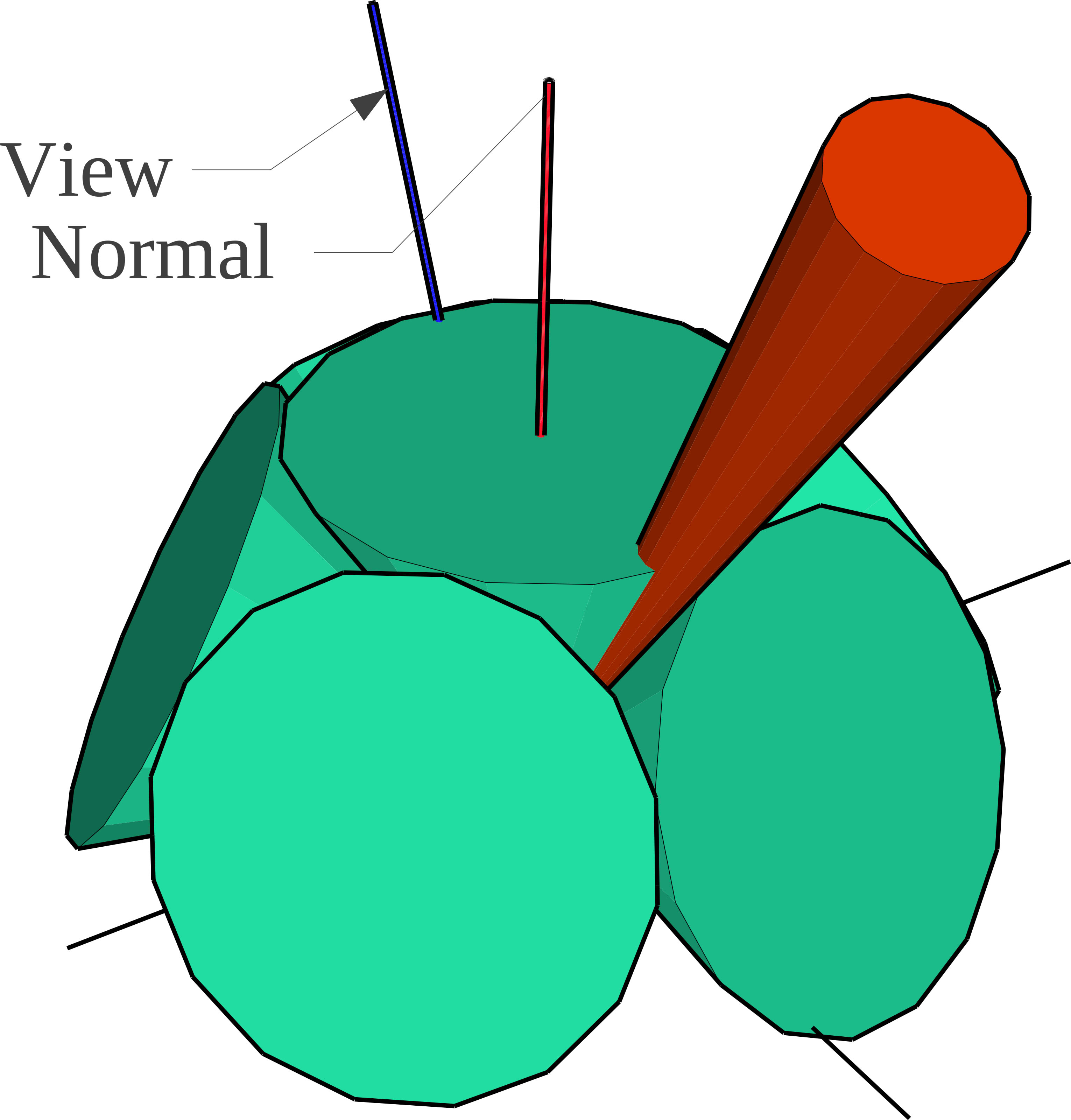 To reduce this issue our proposal utilizes a normal-weighted attenuation, where first the normal attenuation is calculated per every face of the voxel as follows: