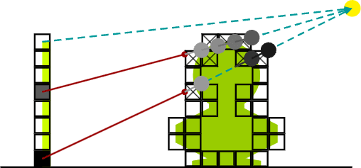 represents the occlusion value after the accumulation is finished. This technique exploits the observation that, from the light point of view, the number of collisions will usually be higher for the rays that pass through the borders of the voxelized geometry.