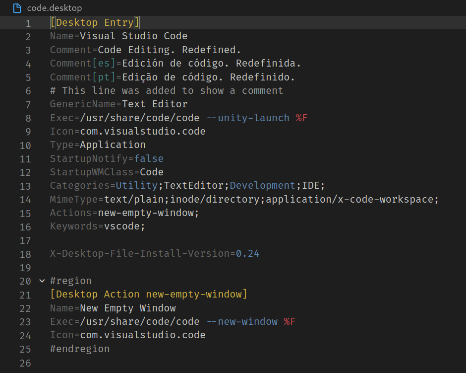 - Syntax Highlighting for .desktop files.