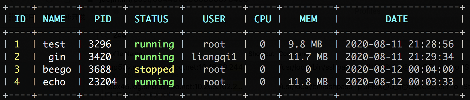 sudo pmon2 run [./二进制进程文件] [参数1] ...Go官方一直没有提供任何进程管理工具,对于 Go 服务的部署,简单的服务,我们使用 linux 内建命令 nohup &组合,或者使用系统自带进程管理工具, 例如 systemd,init.d 配置。或者借助第三方的进程管理工具,如:python 的 supervisor 或者 nodejs 的 pm2。