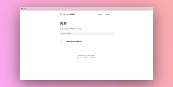 您必须在页脚保留 TinaTheme 主题的名称及其指向链接,否则请不要使用 TinaTheme 主题。