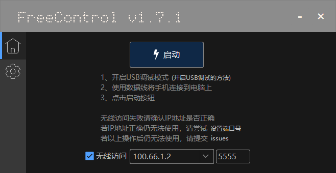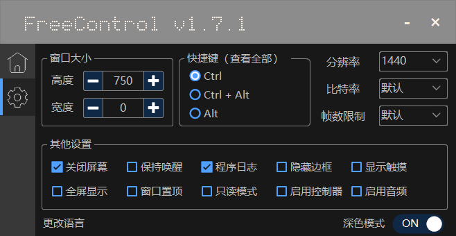 如果在此过程中遇到了什么问题,可尝试打开配置文件 %AppData%\FreeControl\config.json,将 CustomArgs 的值由 --keyboard=uhid 改为 --keyboard=sdk。