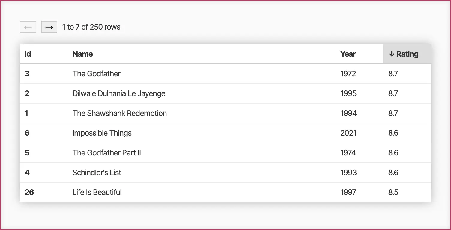 // -> {employees: 3, open: true}For other types of data applications, a tabular data structure is more useful. TinyBase lets you set and get nested Table, Row, or Cell data, by unique Id - and in the same Store as the keyed values!
