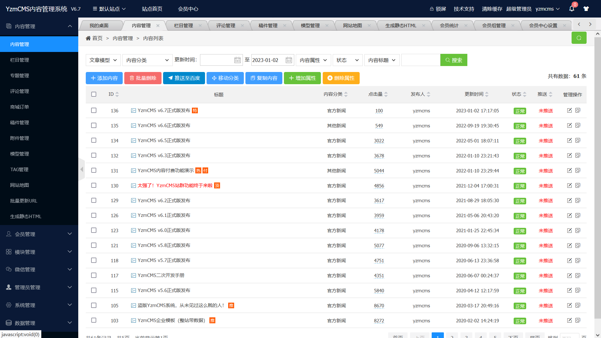 YzmCMS系统采用MVC模块式开发,增加了系统的维护性、可扩展性,使二次开发变得简单、容易。